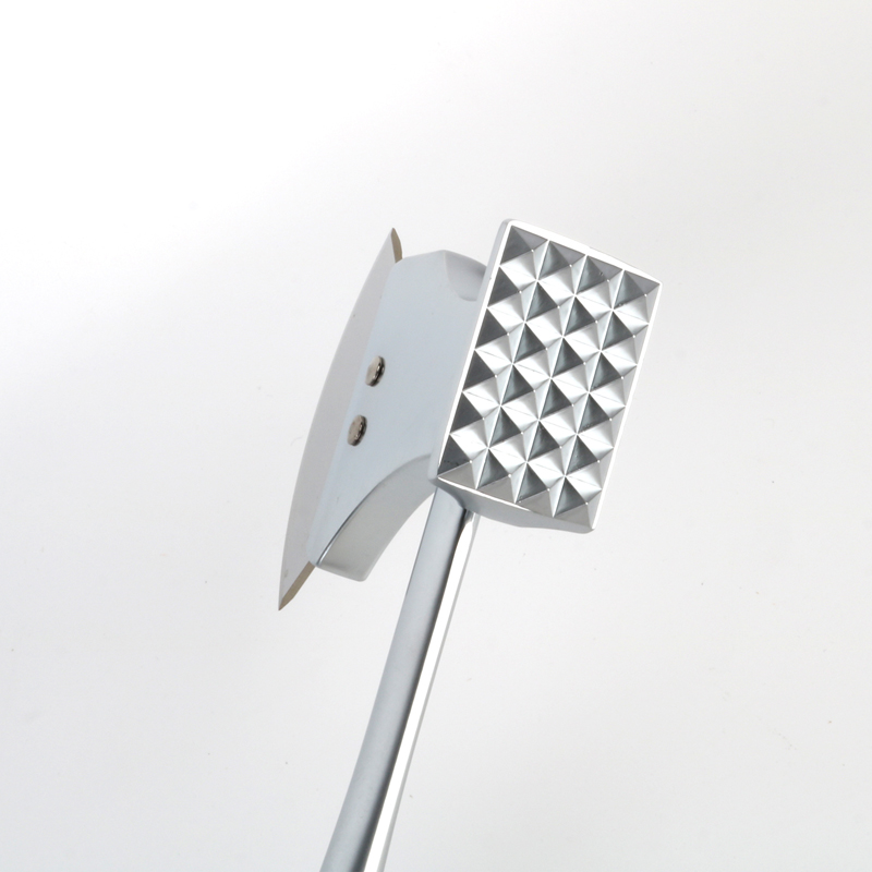 Alt-i-ett-verktøyet som fungerer både som en nydesignet sinklegering for kjøttmørning og en pizzaskjærer, har en lengde på 25 cm. Frontenden er delt inn i to funksjonelle flater: en for kjøttmørneren og den andre for pizzakutteren. Håndtaket er utformet med en optimalisert bueform og delen av håndtaket nær håndtaket er laget tykkere for et håndtak for en voksen hånd. også lagt til halen på håndtaket for å redusere håndflatesmerter og øke komforten under langvarig bruk.