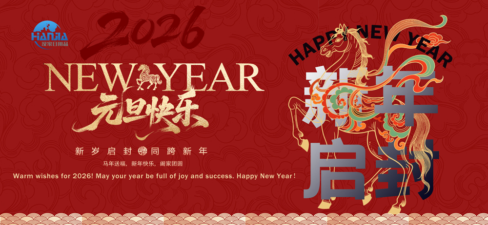 Vi ønsker alle våre innenlandske og internasjonale kunder et godt nytt år og betydelig vekst i virksomheten deres. Jinhua Hanjia Commodity Co., Ltd. er forpliktet til å gi deg kontinuerlige produkter og tjenester av høy kvalitet, og vi ser frem til ditt besøk til selskapet vårt.