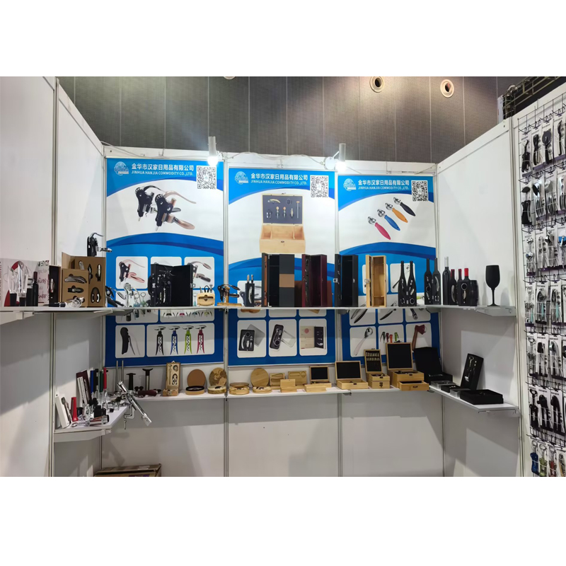 Jinhua Hanjia Commodity Co., Ltd., lokalisert i samme administrative region som utstillingsstedet og innen en times kjøretur fra Yiwu Small Commodities City, nyter iboende regionale økonomiske produksjonskjedefordeler. Ved å dra nytte av Yiwus blomstrende internasjonale e-handelsmiljø, har selskapet valgt ut syv produktserier og hundrevis av varer som er egnet for hjemme- og internasjonale plattformer for kjøkken og hjemmekjøkken. varer, vintilbehør som korketrekkere i rustfritt stål og legert vin, vinpropper, champagneverktøy, hvitløkspresser, nøttekjeks, boksåpnere, skreller, kjøttmørnere, cocktailshakere, hoftekolbe i rustfritt stål, vinkarafler, vinsett av tre og PU, vinbokser og mer.