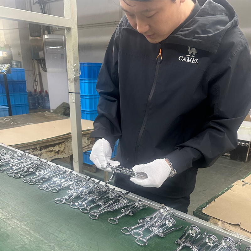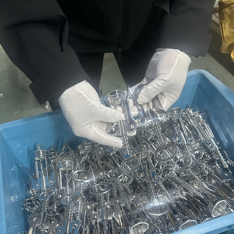 Beleggene på alle komponenter i korketrekkeren bruker vanligvis galvaniserings- eller malingsmetoder, for denne illustrasjonen vil vi fokusere på galvanisering. Galvaniseringsprosessen fullføres av en outsourcet leverandør, som krever høyt spesialiserte fasiliteter, utstyr og industriingeniører med mange års erfaring innen sitt felt, sammen med mange grunnleggende teknikere og har en langvarig, kompleks arbeidsprosess med 30 år. bransjeerfaring, som sikrer produktstabilitet. Dette sikrer også at ulike produksjonsproblemer som oppstår under produksjonen kan løses raskt, profesjonelt og effektivt. Disse ordningene bidrar til å sikre produksjonssyklusene for varer som vintilbehør, kjøkkenutstyr og korketrekkere, samtidig som de støtter kundenes salgsplaner.